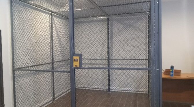 The cage must be manufactured with 10ga thick frame welded woven wire. The door must be self closing door, Either hinged or sliding. Doors can be 3′ wide to 12′ wide. Lock options include cylinder locks, programmable push button, key fob, card swipe or electric strike. Our programmable locks can identify which employee entered the cage and be camera motion programmed.